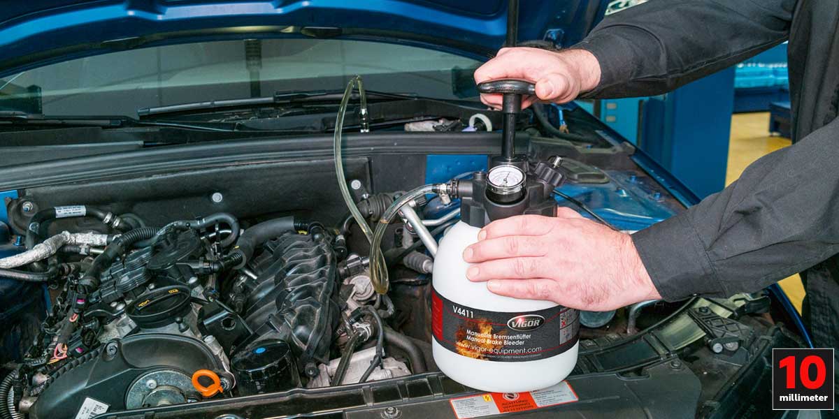 Genial løsning for lufting av bremser uten hjelp av andre. Pumpekanne med manuell trykkoppbyggingsfunksjon for utluftende bremse- og koblingssystemer. Bremsereservoaret trykksettes via pumpekannen som fylles med ønsket bremsevæske. Ved åpning av lufteskruene, vil overtrykken presse ut luft fra rørene.