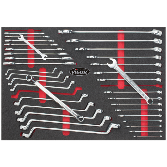 Vigor fast, ring og kombinasjonsnøkler i 36 delers myksskum innlegg.