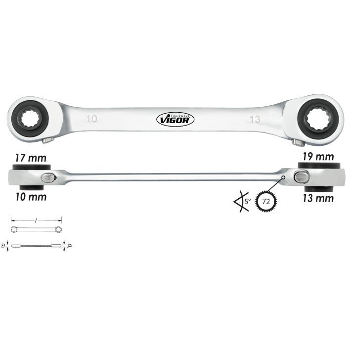 Beskrivelse / Vigor V2705 Skrallenøkkel 4I1 10,13,17,19