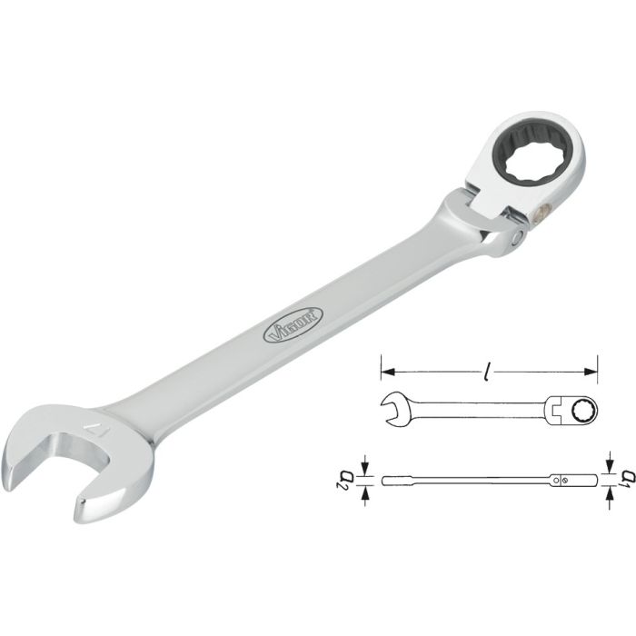 Beskrivelse / Vigor V2813 Skrallenøkkel Leddet 17mm L.22