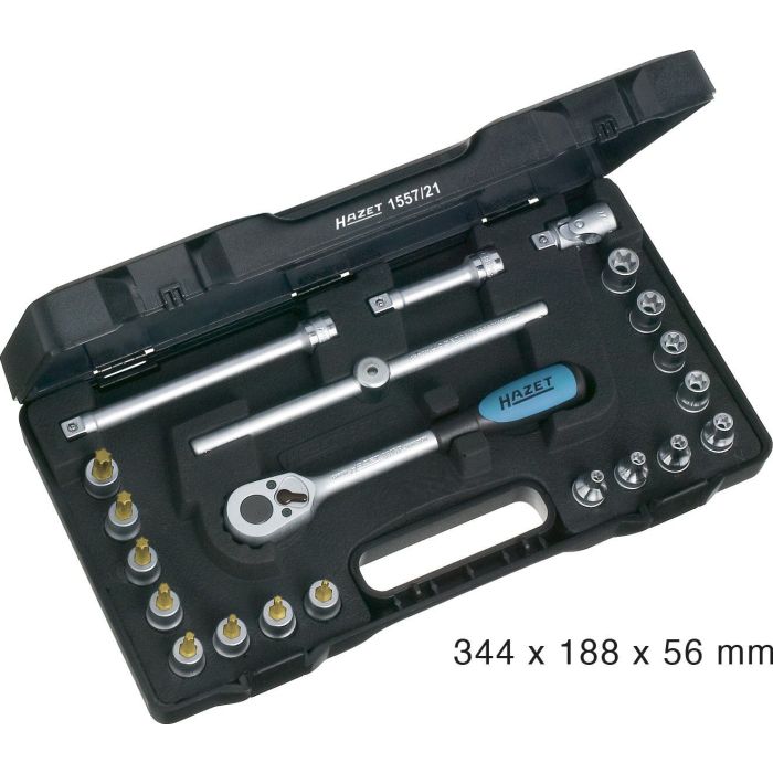 Beskrivelse / Hazet 1557/21 3/8 Torxsett E & T M. Skralle