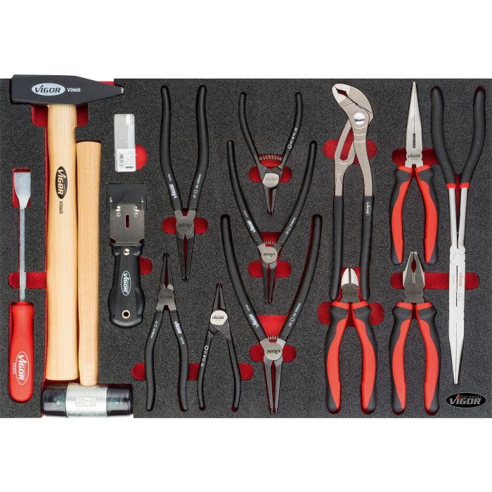 Beskrivelse / Vigor V5636 Tangsett+Hammere mm. 3/3+ Ileg