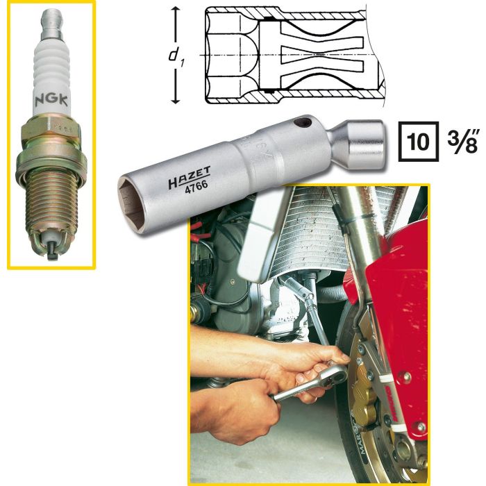For manuell betjening. Rustfri og varmebestandig. Størst mulig frirom for den keramiske isolatoren. 6 fjærelementer – sikkert tak i tennpluggene. Demping av sidebevegelser.